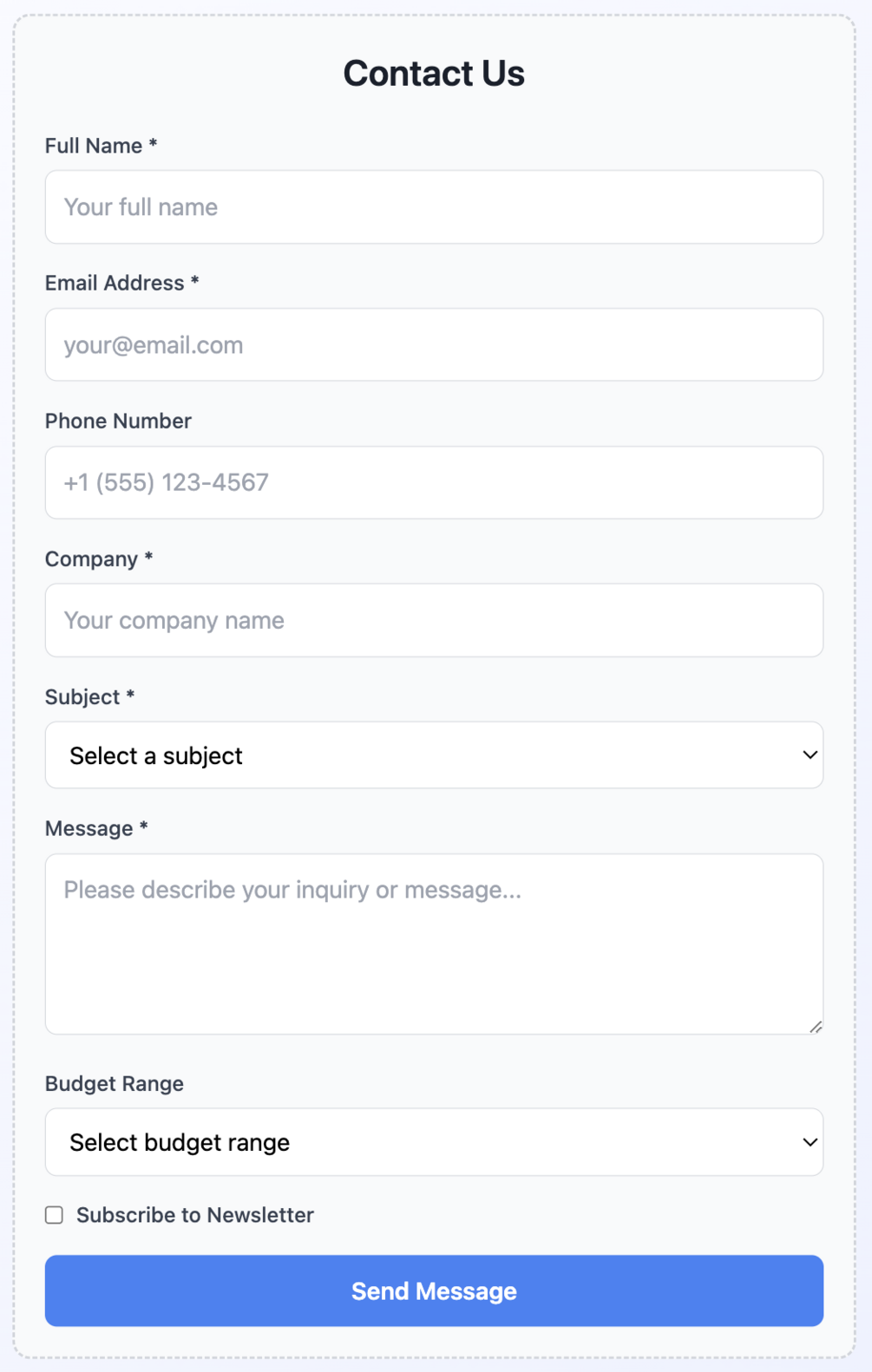 Business Contact Form Template - Professional Company Contact Form