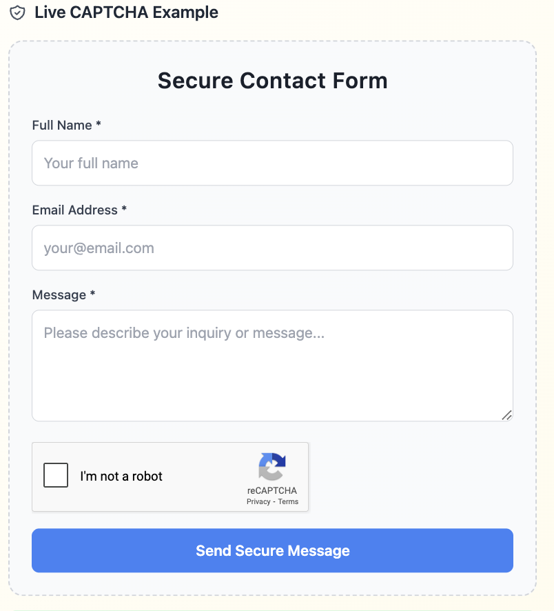 Contact form with CAPTCHA Security Configuration - Advanced Spam Protection Setup