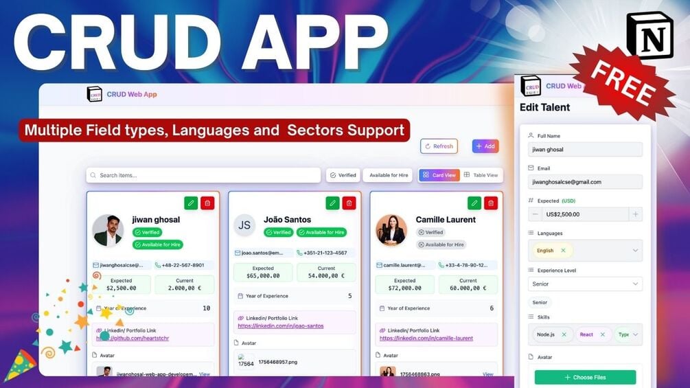 Discover how to transform your Notion database into a stunning, professional web application without writing a single line of code! In this tutorial, I show you a revolutionary free tool that automatically reads your Notion structure, creates adaptive interfaces, and handles every field type intelligently – from text and emails to multi-select tags, dates, currencies, and more.