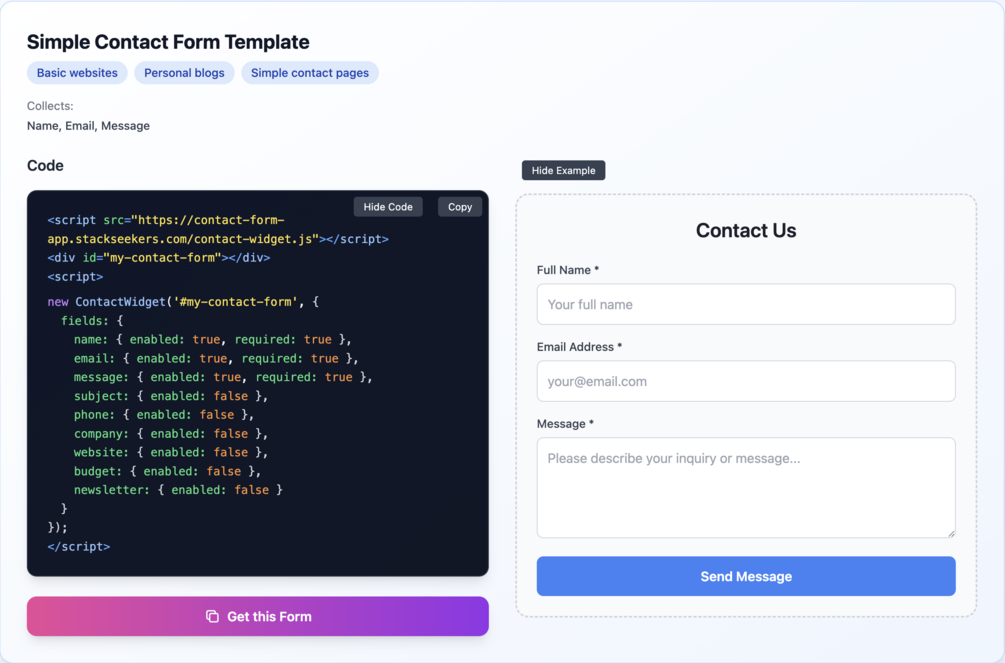 Create a beautiful contact form for your website in just minutes! This easy-to-use contact form connects directly to your Notion account - no tech skills needed. Works perfectly on WordPress, Wix, and Squarespace websites. Looks great on phones and computers. Automatically saves messages to your Notion database so you never miss a customer inquiry.